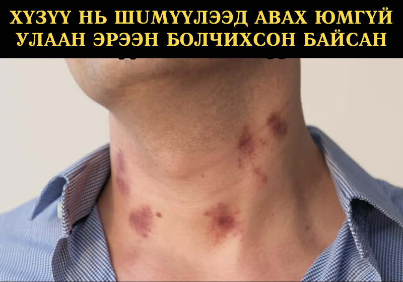 Хүзүү нь шимүүлээд авах юмгүй улаан эрээн болчихсон байсан